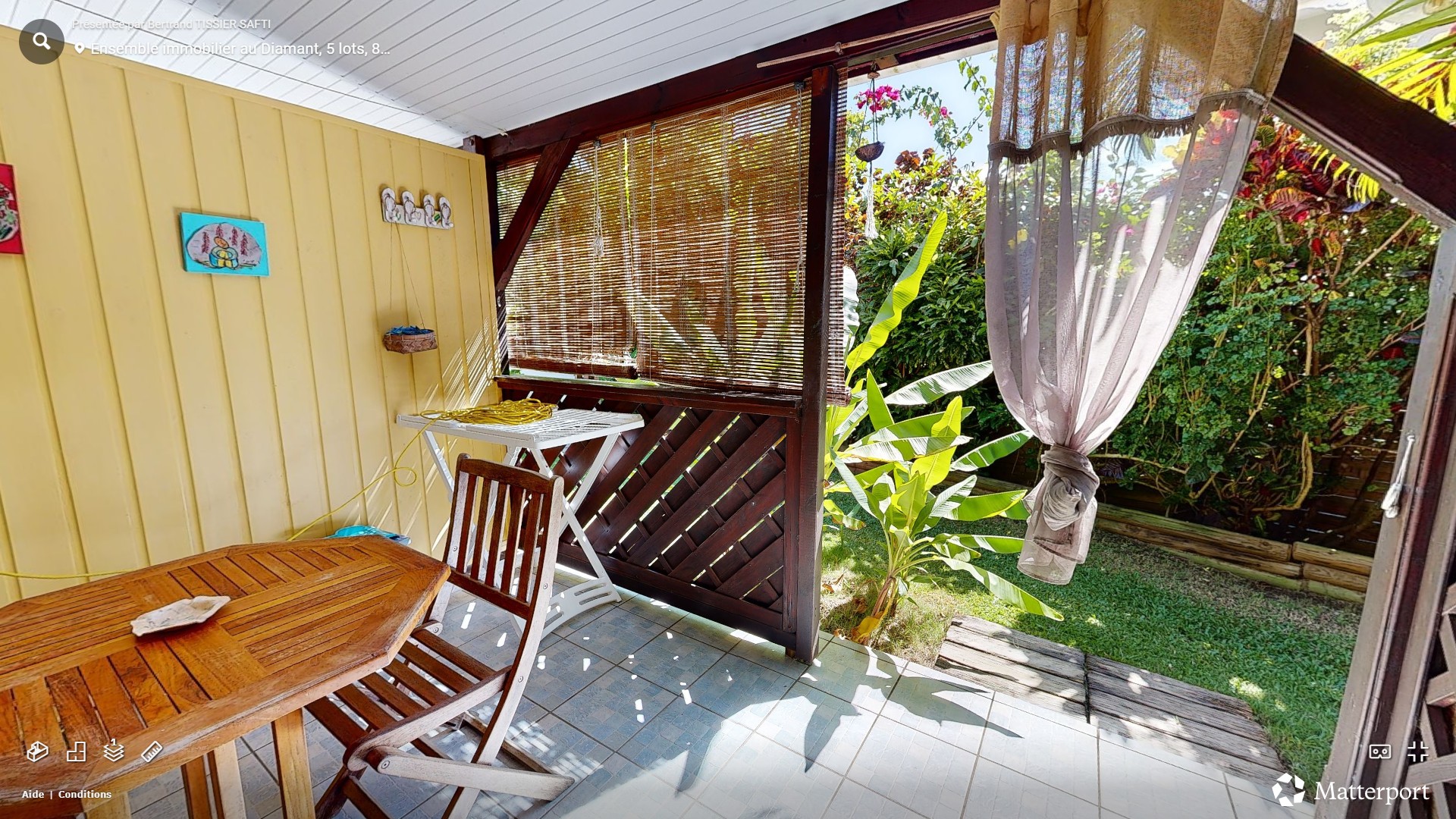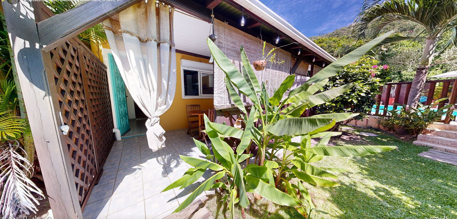 La terrasse privative donnant un accés direct sur le jardin tropical et la piscine.