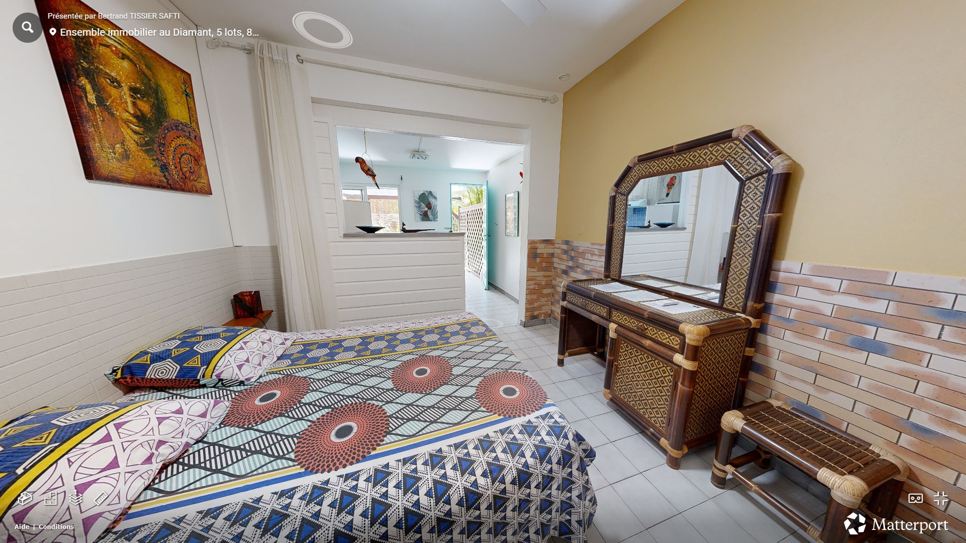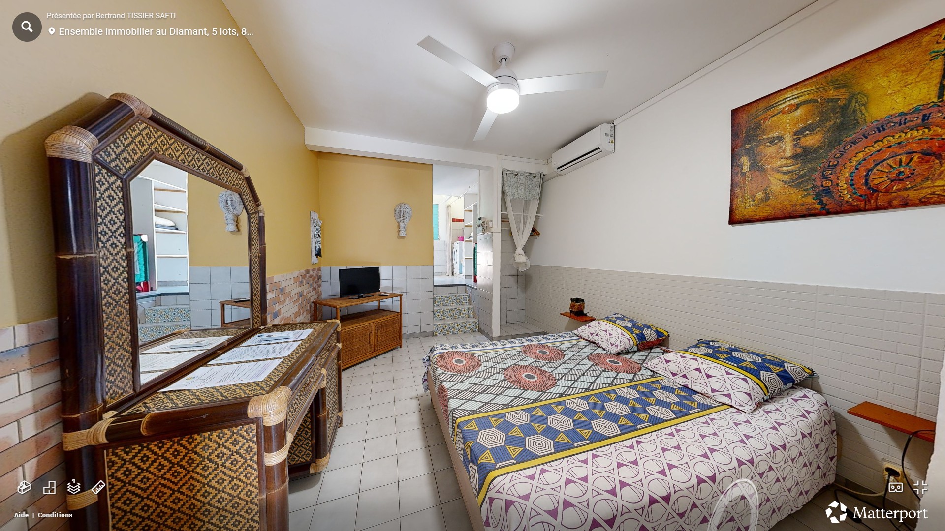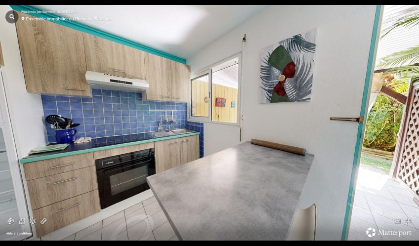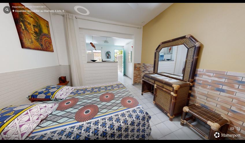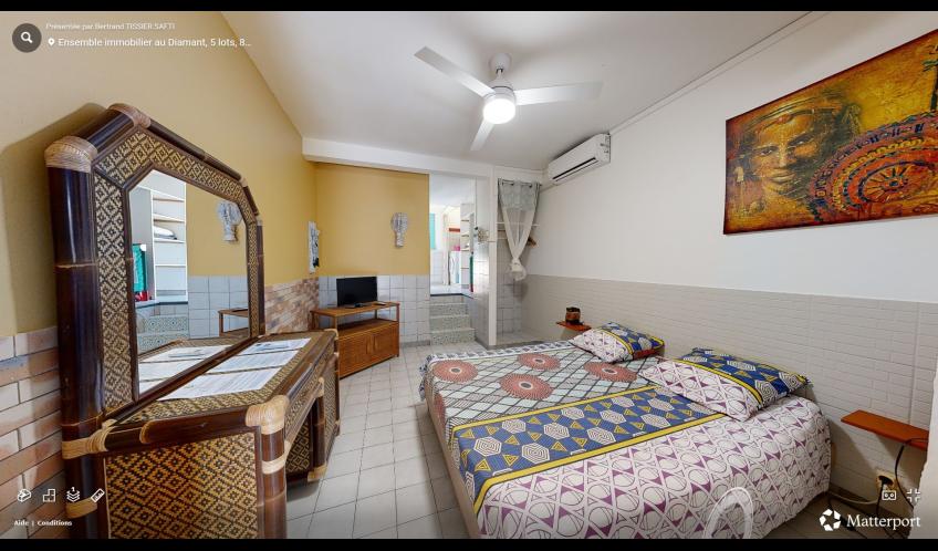 Le logement T1 Alpinia est situé au rez du jardin tropical de la résidence, il bénéficie d'une chambre climatisée.